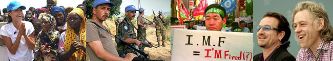 Development agencies play the role of the new missionaries with ex-pat workers living in gated communities, physically separating themselves from their “subjects.” Teaching and preaching to local communities, they replicate the work of missionaries through “doing good” in foreign and exotic lands, with their “superior” knowledge. Within this circus performance, celebrities are the new “experts” with the likes of Bob Geldof or Angelina Jolie reporting on the severity of famine.